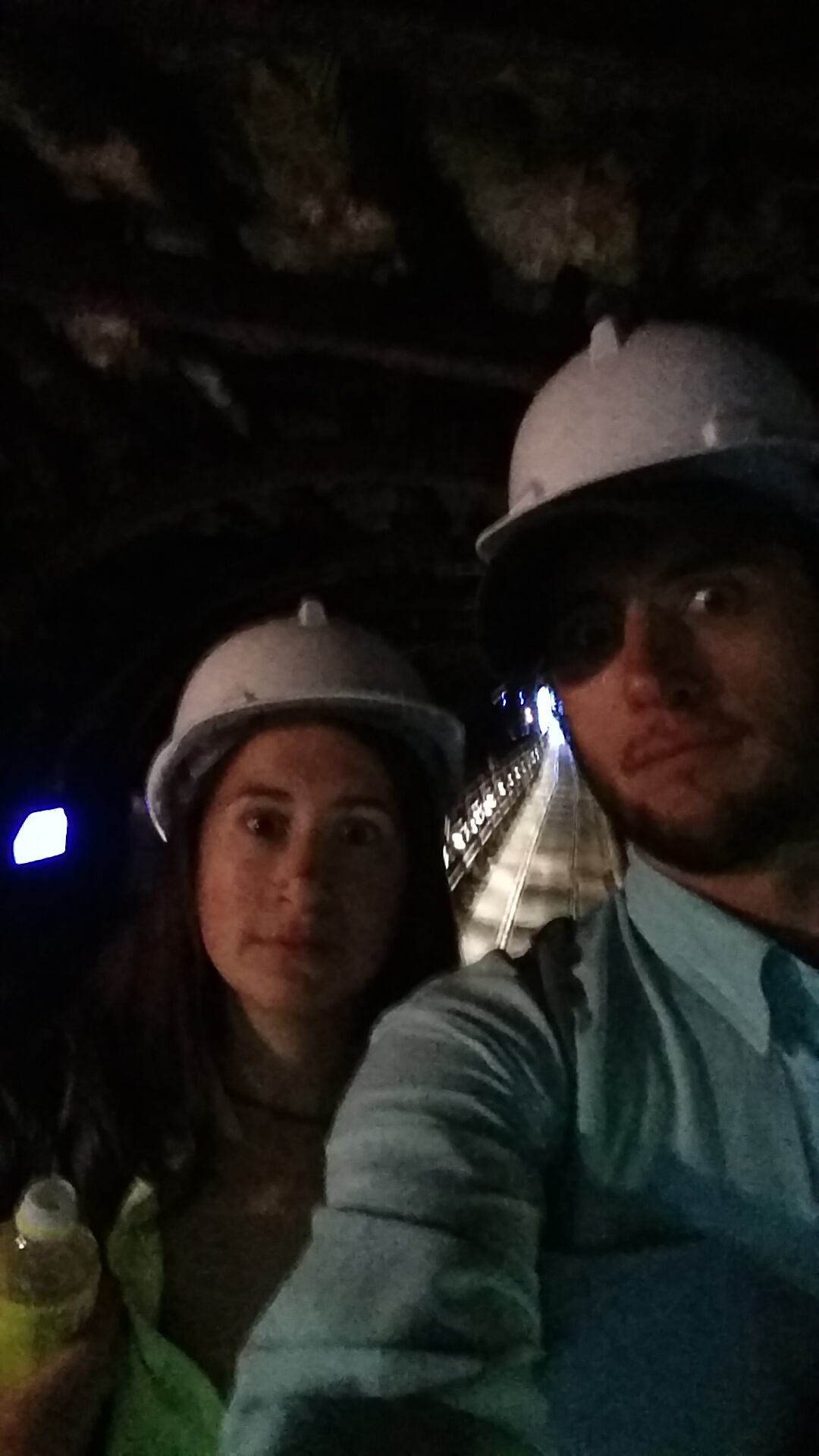 We then took a walk through an old gold mining tunnel. We had to wear hard hats. At this point, my rough morning had turned into a rough day and this was the result of all of our attempted selfies: