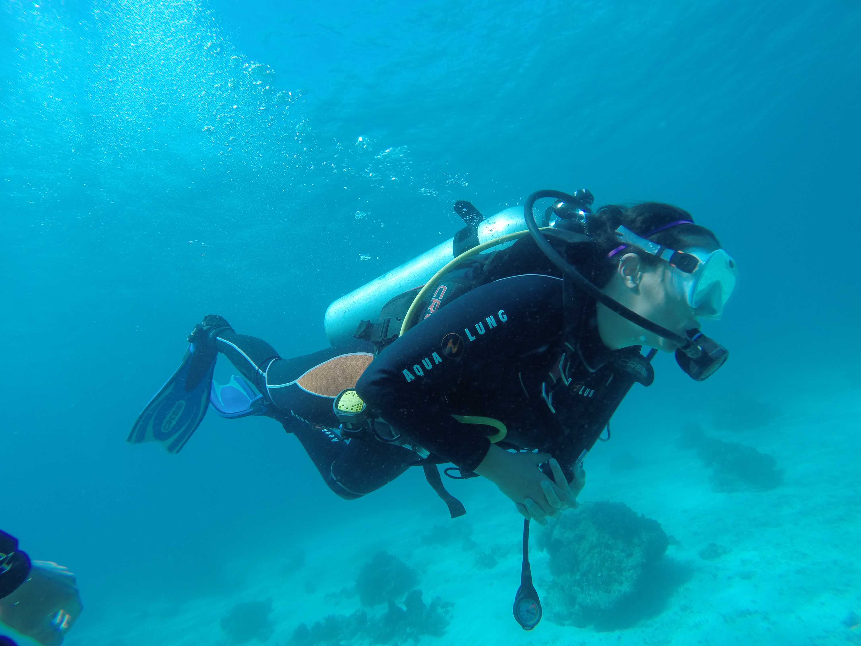 After the boring theory stuff (kidding… it was actually pretty interesting), we finally got in the water. Down we go!