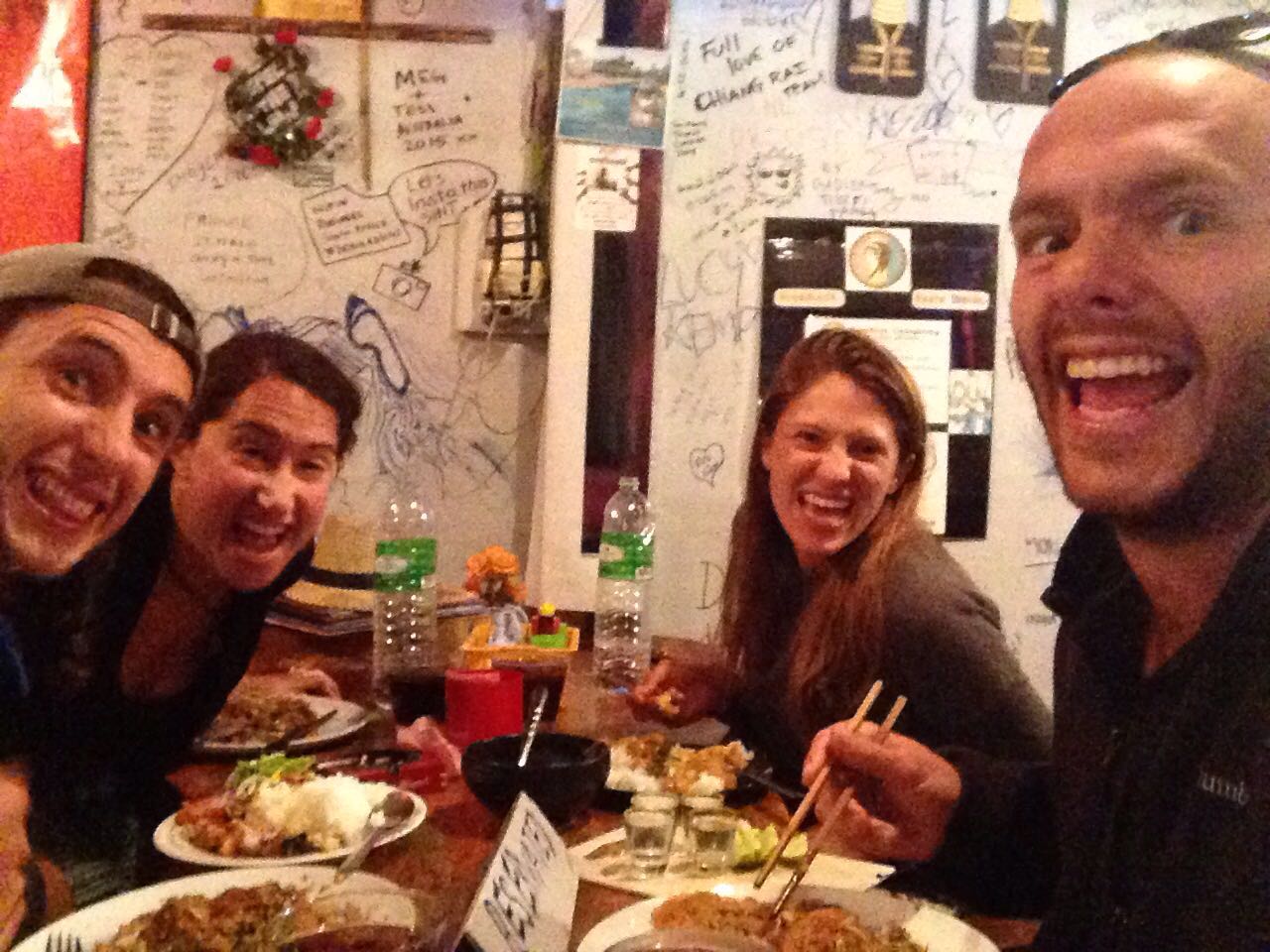 Almost entirely out of moves, we grasped for one final straw in an attempt to locate the passports – a straw by the name of Kea, our amazing cooking instructor from Chiang Mai. As she had friended me on Facebook, we thought to shoot her a Facebook message to see if she could run over to our guest house and ask if they have the passports. Even though we all thought this was the least likely scenario (like I said – grasping at straws), this would have been the most favorable one as that would mean that Yoav and Lauren could leave early the next day, get the passports, and make it back to Chiang Khong that same day, thereby only delaying our trip by a day, which seemed like a minuscule sacrifice given the gravity of the situation (again, intentionally over-dramatizing here). Problem was, her Facebook name was in Thai and there was no way for me to search her without scrolling through my list of friends (and my embarrassing number of Facebook friends DEFINITELY did not permit for any form of scrolling). As we had been given a cook-book with the number of the cooking school – Smart Cook Thai Cookery School, for those who are interested – on it, we gave that number one last desperate call. They picked up! The man I spoke to (the owner, I assume) was so kind and helpful and a few minutes later, Kea sent me a Facebook message. I explained the situation and she told us to hang tight as she ran over to Chok Dee to investigate. We sat in silence, the four of us avidly staring at the computer screen. After a few minutes, a message popped up: “Tamar”, followed by the three little dots that indicate that your messaging partner is typing. We collectively held our breaths, staring at the three little dots for what seemed like an eternity. And then, another message: “The owner of guesthouse she told me have passport of Lauren and Yoav”. I can’t even begin to adequately describe the screams, shrieks, yelps, hugs and hollers that ensued. It was easily one of the most intense moments of our entire trip. Our soon-to-be shattered dreams were no longer so, and our much-anticipated Laotian shenanigans were going to take place in full force! To describe Kea as our “amazing cooking instructor” is nothing short of an understatement. She was our life-saver (OK, slight exaggeration, but again… just roll with it). Kea – there is no universe in which we can properly thank you. You are our hero.