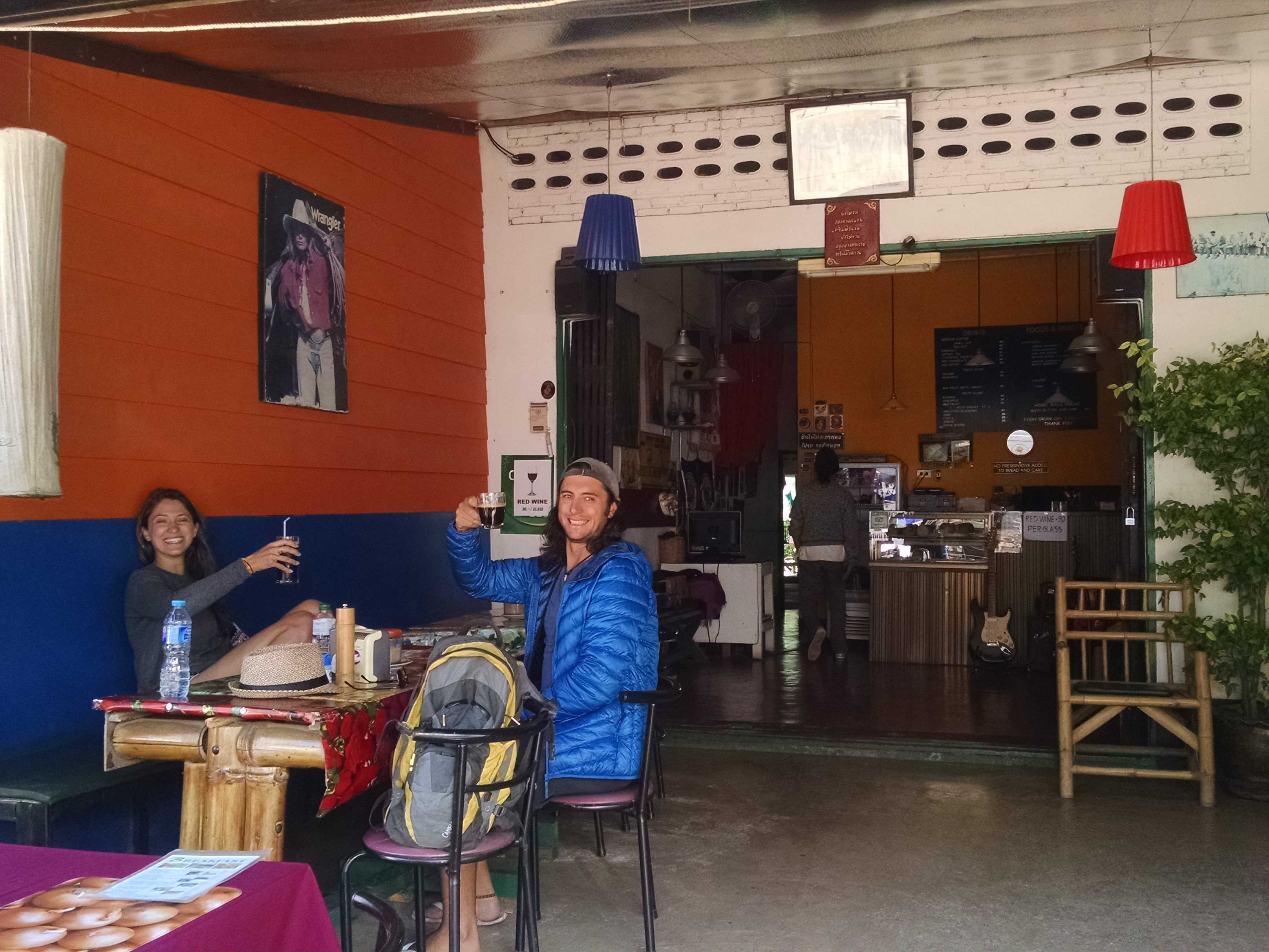 After a genuinely absurd night, the oh-so noble and valiant Yoav SOMEHOW managed to get on a 6am bus to Chiang Mai, leaving the three of us to nurse our hangovers at an adorable little organic restaurant called Bamboo Mexican House, which boasted freshly-grown coffee and homemade WHEAT bread, which is SO hard to come by in Asia! The owner was an adorable hippie who can best be described as a Thai John Lennon in his long-haired, bearded days and whom was extremely proud of his restaurant and products. And he should be – the coffee and bread were some of the best I’ve had in Asia, maybe even in my entire life. Or maybe everything just tasted better due to our exceptional circumstances. Nonetheless, we came back the next morning before crossing the border to have some breakfast, coffee and buy an entire loaf of bread: