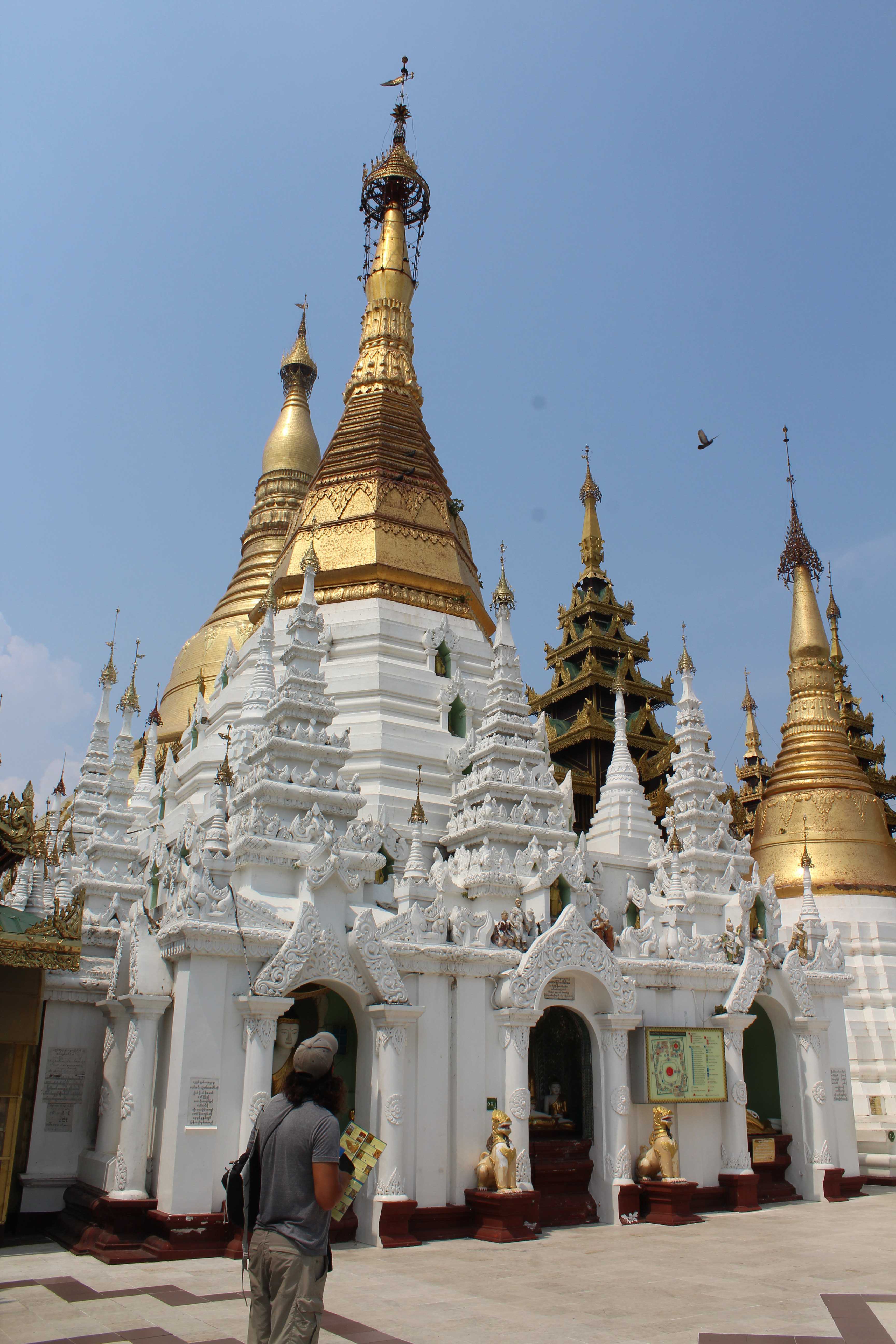 Shortly after the above photo was taken and Francy was all smiles, he realized his phone was missing. We double checked all bags and pockets – no phone. We ran around all the sites we had visited – no phone. We even tried to talk to security (who barely spoke English) who did their best to help us look for the phone, but to no avail. After 2 hours of searching for it, we were forced to give up. Consider it the sacrifice we made to the holiest site in all of Myanmar. Aside from the fact that it was obviously a bummer to lose the phone, Francy had JUST taken the COOLEST 360 photosphere of the entire pagoda and its surroundings and we were pretty damn stoked to share that on the blog. So yeah, sorry peeps. No photosphere. Instead, you get this: